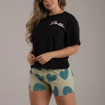 Pijama de short y camiseta oversized en suave algodón, fresca, ligera y con diseños únicos, perfecta para descansar con estilo. Short con cintura elástica para un ajuste ideal